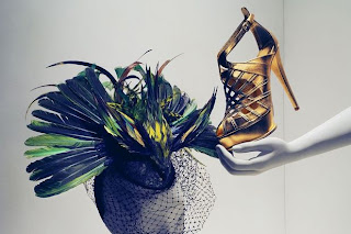 Fascinador (she use too much) and Gold shoes